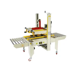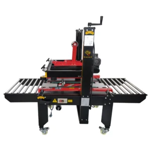 ماكينة إغلاق الكراتين ذات السيور العلوية و السفلية تعمل بنظام شبه آلي لتثبيت الكرتون وتغذيته عبر أحزمة جانبية، حيث تُطبق تلقائيًا شريط اللصق على أعلى وأسفل الصندوق. تتميز بتصميم مبسّط، إعداد سريع لعبوات بأحجام مختلفة، وكفاءة عالية في خطوط التعبئة والتغليف المتوسطة.