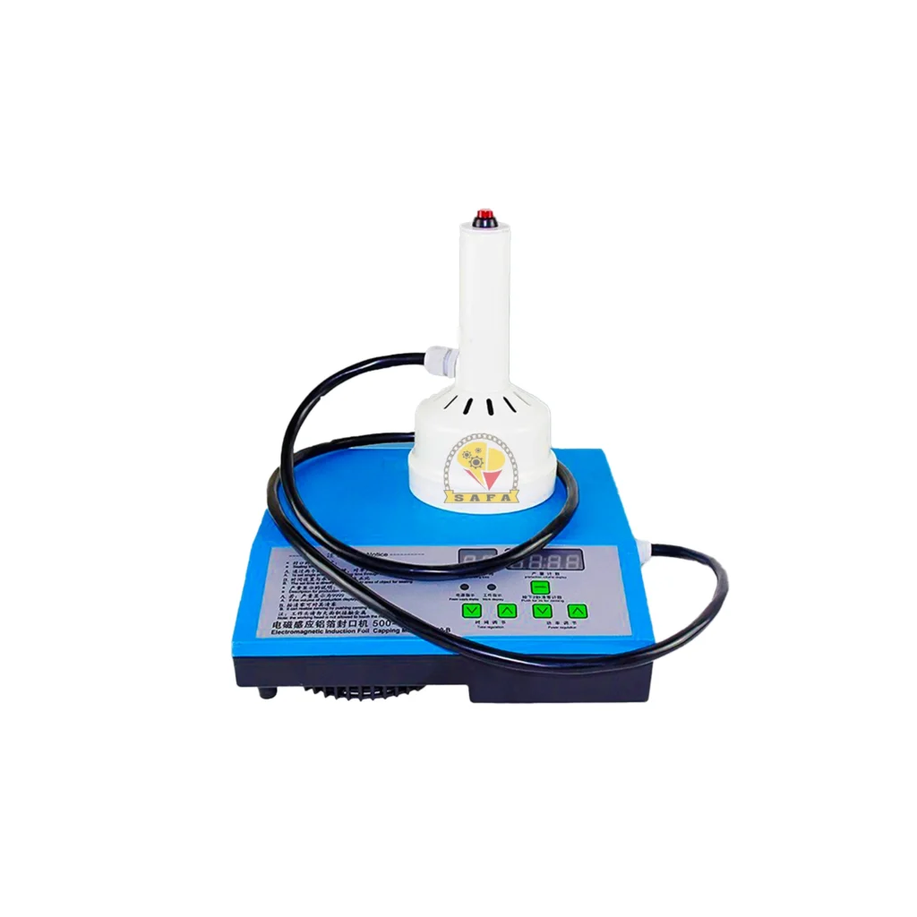 تعمل الماكينة كهربائيًا بالكامل وتستخدم مبدأ الحث الكهرومغناطيسي لتسخين رقائق الألومنيوم داخل الغطاء، مما يؤدي إلى انصهار الطبقة اللاصقة وإغلاق العبوة بإحكام.