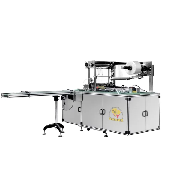 نظام سحب للفيلم البلاستيكي يلف الغلاف حول المنتج تلقائيًا.