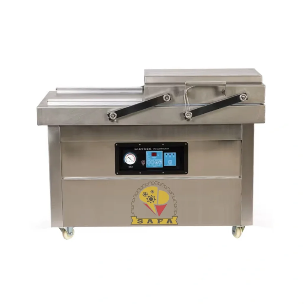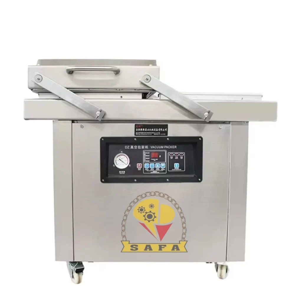 ماكينة تغليف بالتفريغ عالية الجودة بتصميم جديد، تهدف إلى إزالة الهواء من داخل الأكياس أو العبوات وإغلاقها بإحكام. هذا يخلق بيئة خالية تقريبًا من الأكسجين حول المنتج، مما يساعد على حماية المحتوى من التآكل، التلف أو تلف الأطعمة الحساسة.