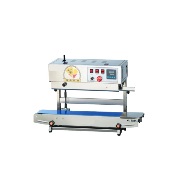 الماكينة المعروضة هي جهاز ختم مستمر بحزام (Band Sealer) بنمط رأسي مع قاعدة (Stand) مصمّمة لتلبية احتياجات خطوط التغليف التي تتطلب عملية ختم أوتوماتيكية للحقائب أو الأكياس أو الأفلام الغشائية. تُعرف هذه الماكينة بقدرتها على العمل باستمرار في وضعية رأسيّة، مما يجعلها مناسبة لتغليف المنتجات التي تُوضع في أكياس أو أفلام عمودية، مثل الأغذية، الكيميائيات، الأدوية أو غيرها، مع الحامل الذي يوفر الثبات والارتفاع المناسب لتكاملها في خط الإنتاج.