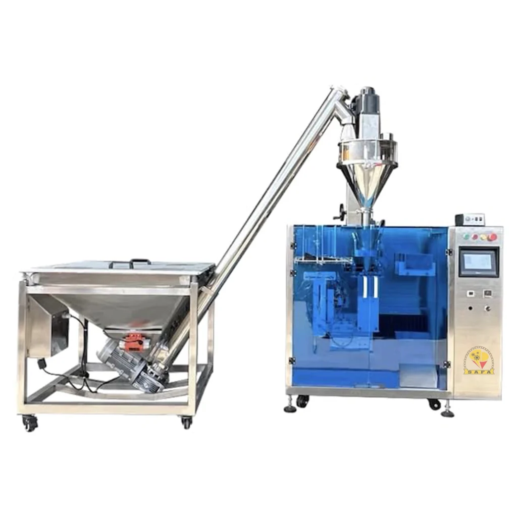 أوتوماتيكية كاملة: تعبئة المسحوق داخل الكيس + لحام وإغلاق العبوة تلقائيًا بدون تدخل يدوي كبير.